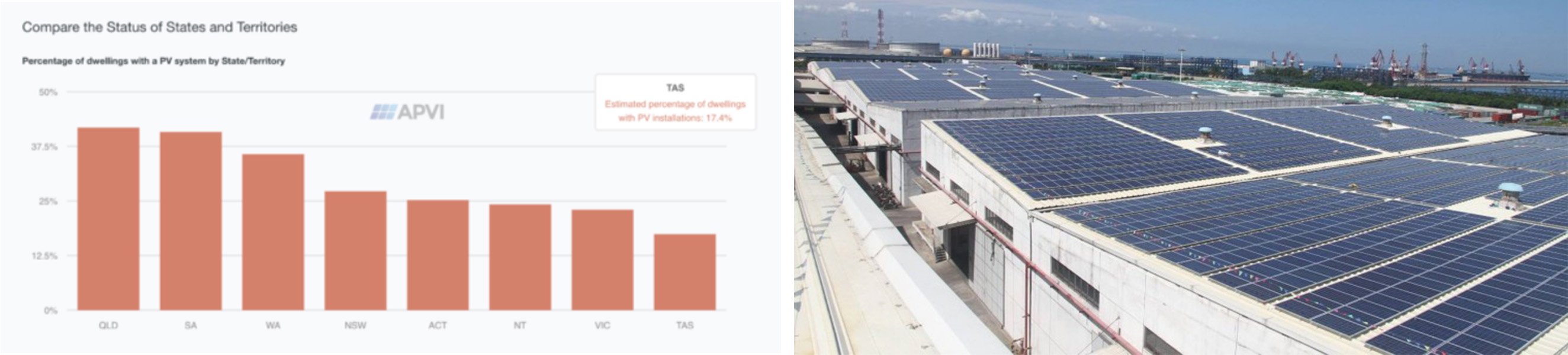 L'Australie compte environ 25 millions d'habitants. Sa capacité photovoltaïque installée par habitant est actuellement proche de 1 kilowatt (kW), ce qui la place parmi les premières au monde. Fin 2021, l'Australie comptait plus de 3,04 millions de projets photovoltaïques, pour une capacité installée totale dépassant 25,3 gigawatts (GW).