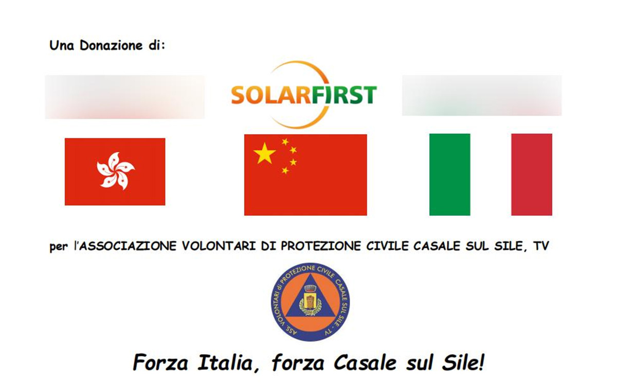 Depuis sa création, SOLAR FIRST s'engage non seulement à fournir à ses clients du monde entier des produits et services de qualité supérieure et à créer davantage de valeur, mais a également toujours considéré le développement des énergies renouvelables et la contribution à la société comme une responsabilité. SOLAR FIRST remercie tous ses clients pour leur soutien et leur confiance. Nous sommes convaincus que grâce aux efforts conjoints de l'humanité, l'épidémie du nouveau coronavirus sera finalement vaincue et que la vie des gens reviendra à la normale prochainement.