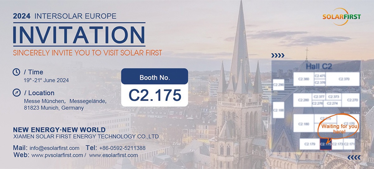 Du 19 au 21 juin 2024, Intersolar Europe, le salon phare de l'industrie photovoltaïque mondiale, ouvrira ses portes au nouveau Centre d'exposition international de Munich. Solar First y présentera ses solutions. Stand C2.175, avec :