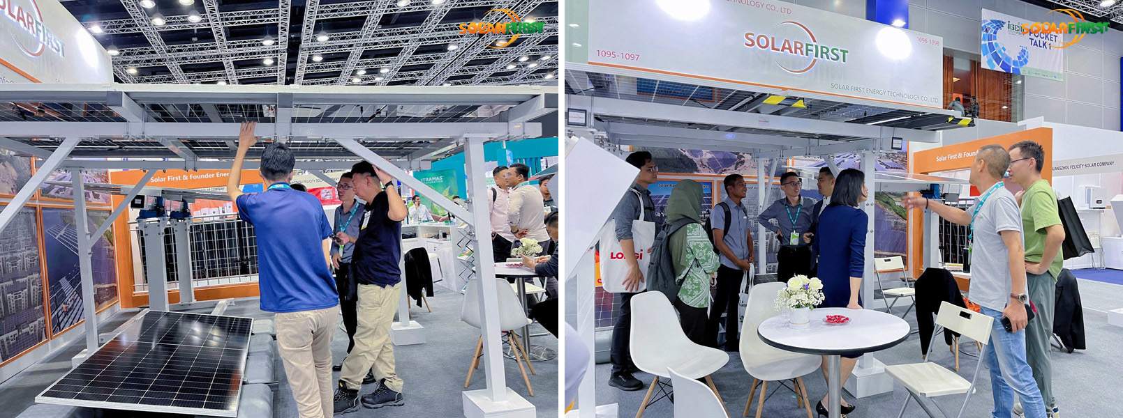 Lors de ce salon, Solar First a présenté sa gamme de panneaux photovoltaïques flottants TGW, ses systèmes de suivi Horizon, ses structures de montage pour toitures photovoltaïques, ses abris de voiture solaires étanches et ses solutions de montage pour balcons, sur le stand 1095-1098 du hall 1 du Centre international de commerce et d'exposition de Malaisie. L'entreprise a attiré des visiteurs nationaux et internationaux, nouveaux comme anciens, grâce à ses produits innovants et ses services haut de gamme.