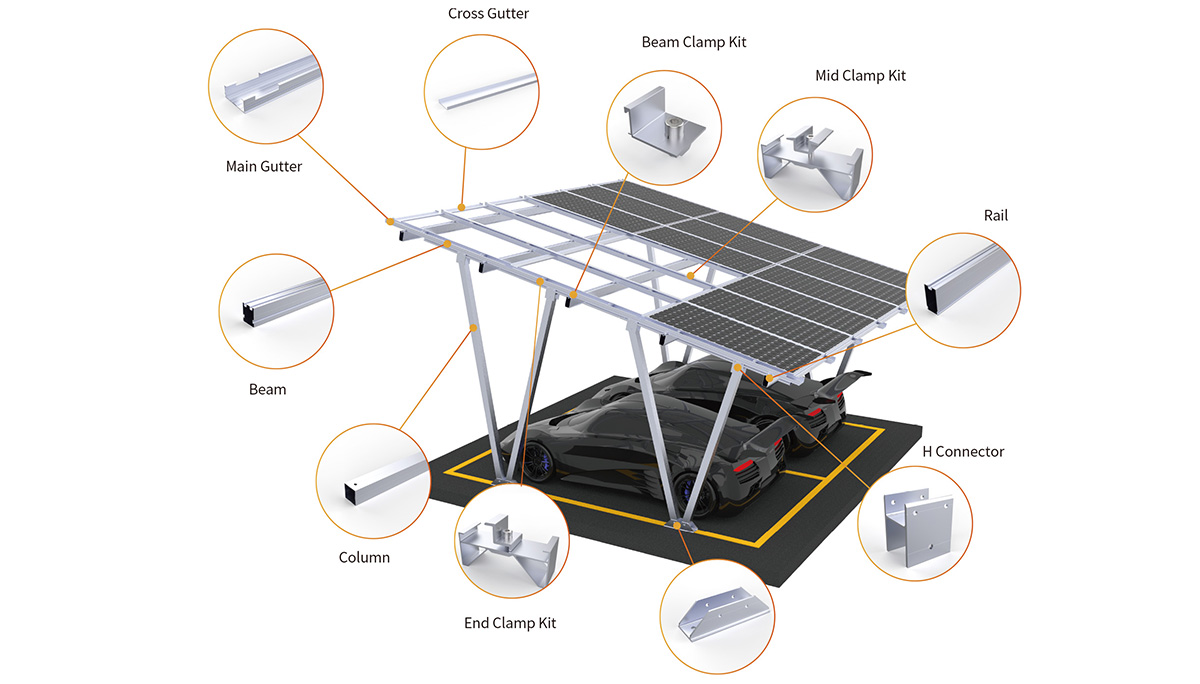 Ce kit d'abri de voiture solaire résidentiel offre une solution tout-en-un combinant abri et production d'énergie renouvelable. Facile à installer sur des fondations en béton, ce système est conçu pour être simple et durable, ce qui en fait le choix idéal pour les propriétaires recherchant des abris de voiture solaires performants et esthétiques.