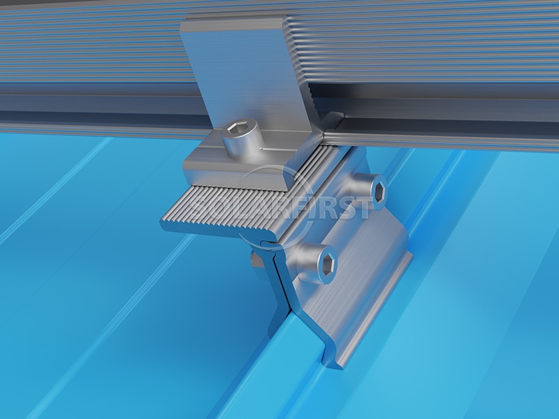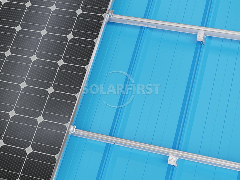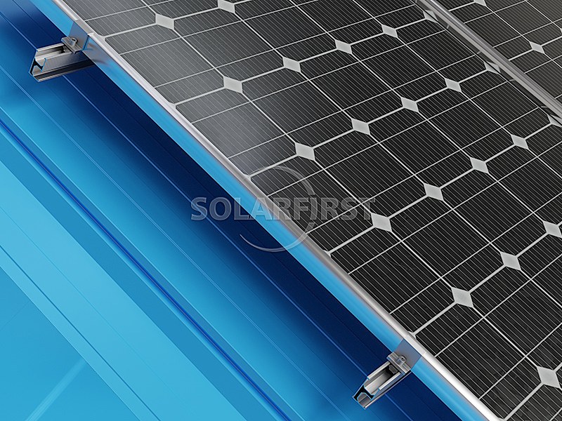 Le système utilise des supports et des rails de fixation de toiture en aluminium léger qui minimisent la charge supplémentaire sur la structure sous-jacente. Les supports de fixation solaire angulaires, spécialement conçus pour s'adapter à différents profils de tôles angulaires, garantissent une fixation sûre sans pénétration dans le toit. Pour une flexibilité accrue, la pince de toit peut être associée à des supports en L pour optimiser l'élévation et le positionnement des modules solaires.