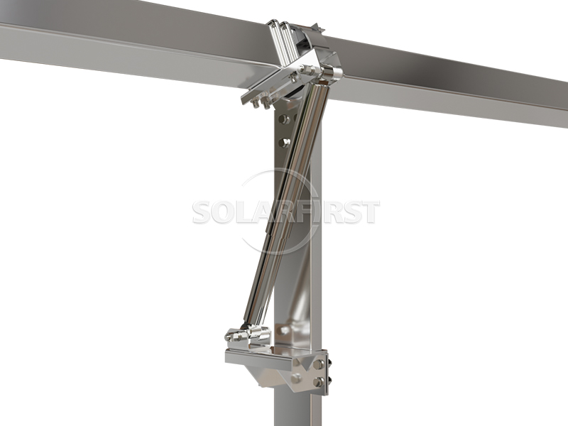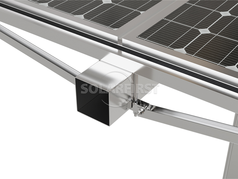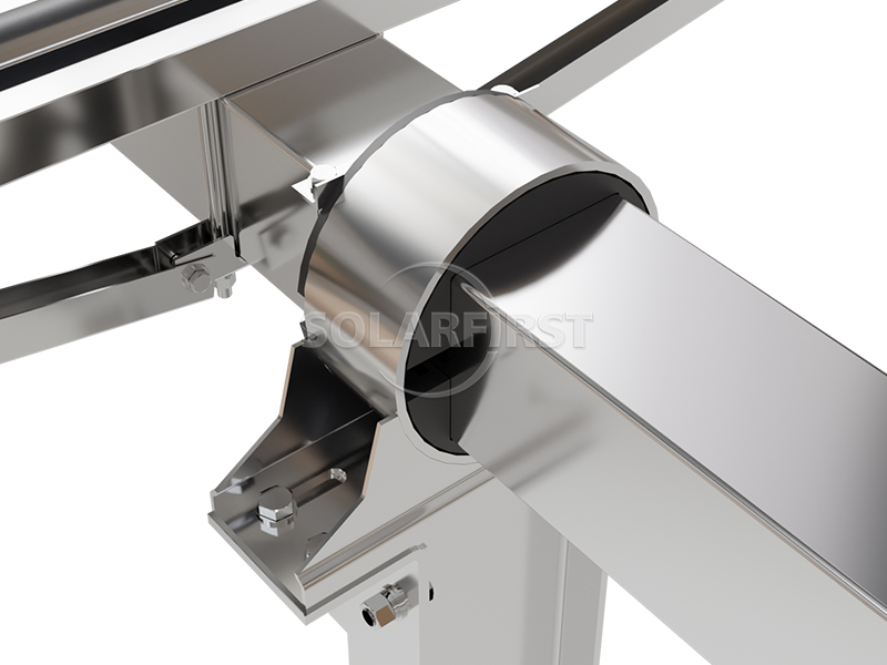 La structure principale est en acier galvanisé à chaud ou revêtu de Zn-Al-Mg, avec une épaisseur moyenne de revêtement ≥ 80 μm. Elle utilise un système d'entraînement rotatif et supporte différents types de fondations, notamment les pieux en béton armé, les pieux coulés sur place et les pieux en acier.
