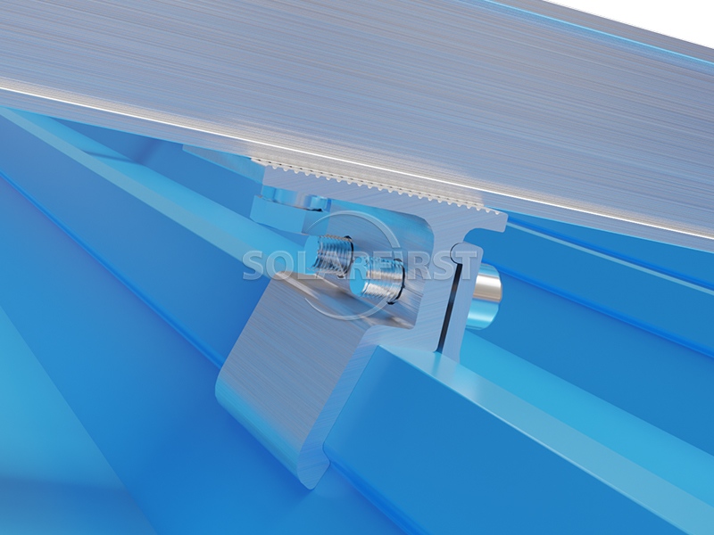 Le système utilise des pinces et des rails en aluminium anodisé, qui exercent une charge légère sur la structure du toit sous-jacent. La conception spécifique des pinces Klip Lok varie pour s'adapter aux différents profils de tôles de toiture. Pour plus de polyvalence, la pince de toit peut être associée à un pied en L pour élever les modules solaires à l'angle d'inclinaison souhaité.