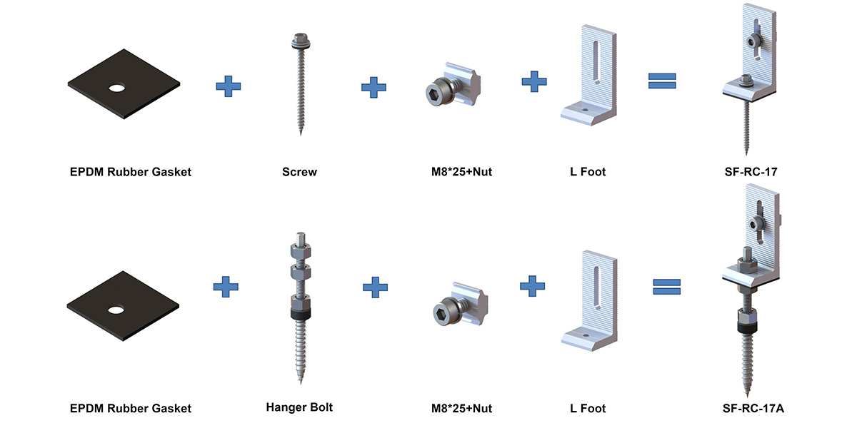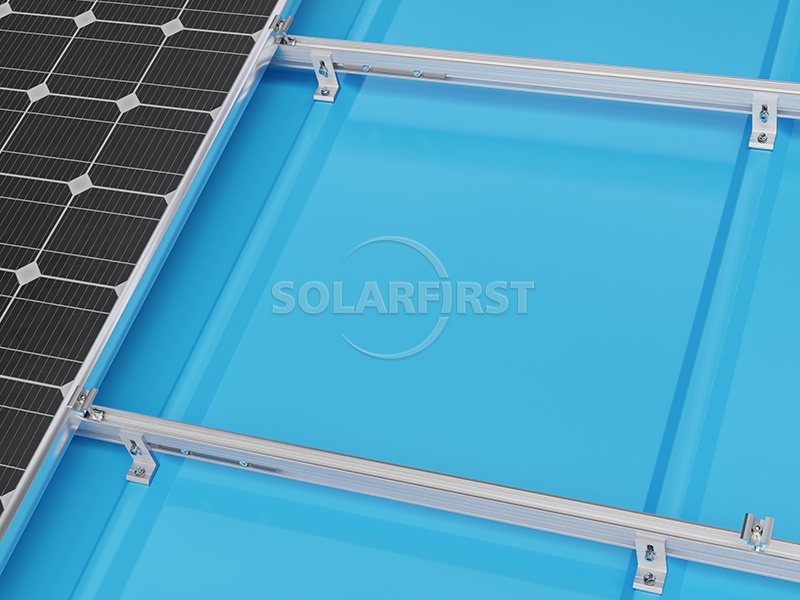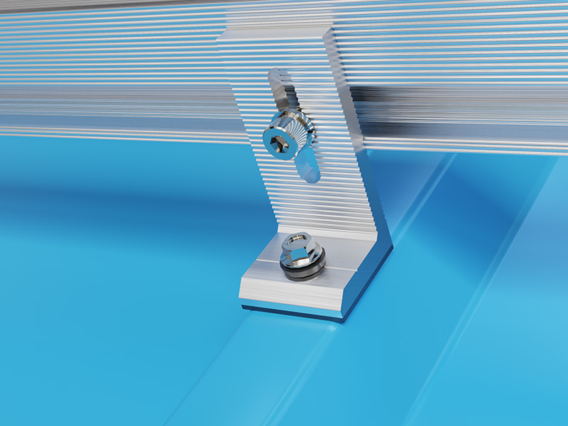 Le support de toit solaire SF avec pied en L offre une solution de montage simplifiée et efficace pour les toits métalliques de type trapèze, caractérisée par sa séquence d'installation logique et rapide.