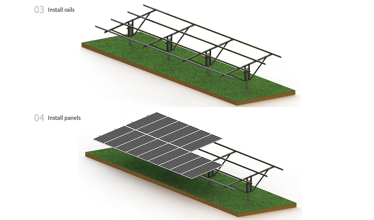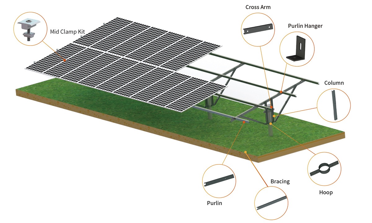 Conçue pour résister aux contraintes des fondations traditionnelles, la structure est fabriquée en acier galvanisé à chaud ou en acier revêtu de zinc-aluminium-magnésium (Zn-Al-Mg) adapté aux conditions spécifiques du site, garantissant une résistance à la corrosion et une fiabilité structurelle durables. Avec une résistance au vent allant jusqu'à 60 m/s et une résistance à la neige de 1,4 kN/m², ce système répond aux normes internationales les plus strictes, notamment GB, EN et ASCE.