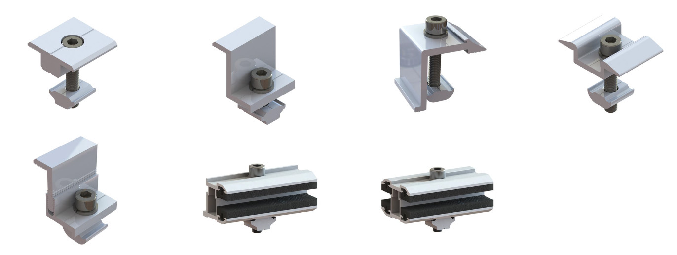 Les colliers sont disponibles en plusieurs modèles, avec des options de serrage à simple ou double boulon, simplifiant ainsi l'installation et gagnant du temps. Compatibles avec les configurations de panneaux longitudinaux et transversaux, ils s'adaptent à divers profils de toiture métallique, tels que les joints roulés simples ou doubles, et sont compatibles avec la plupart des modules solaires. Des composants supplémentaires, tels que des pieds en L, des pieds fixes ou des colliers de serrage, permettent une intégration flexible et rapide aux systèmes de rails complets.