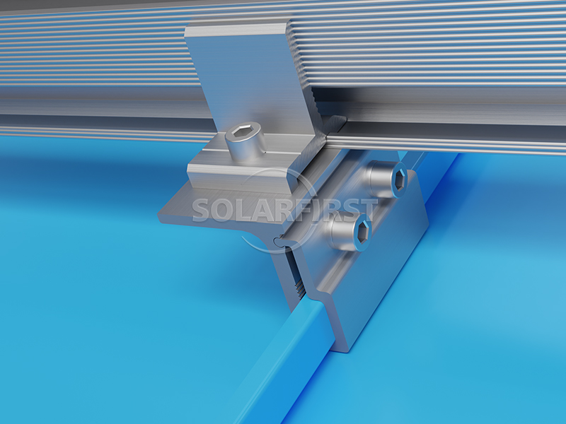 Le système est équipé de supports de fixation pour toitures à joint debout de précision, qui se fixent solidement à divers profils de toitures à joint debout sans nécessiter de percement. Ces supports de fixation métalliques spécialisés fonctionnent en conjonction avec des rails légers en aluminium pour répartir uniformément la charge et minimiser les contraintes supplémentaires sur la structure du toit. Le système complet de fixation pour toiture solaire comprend des clips de fixation spécialement conçus pour maintenir les modules parallèles à la surface du toit, tout en assurant une fixation sûre et fiable.
