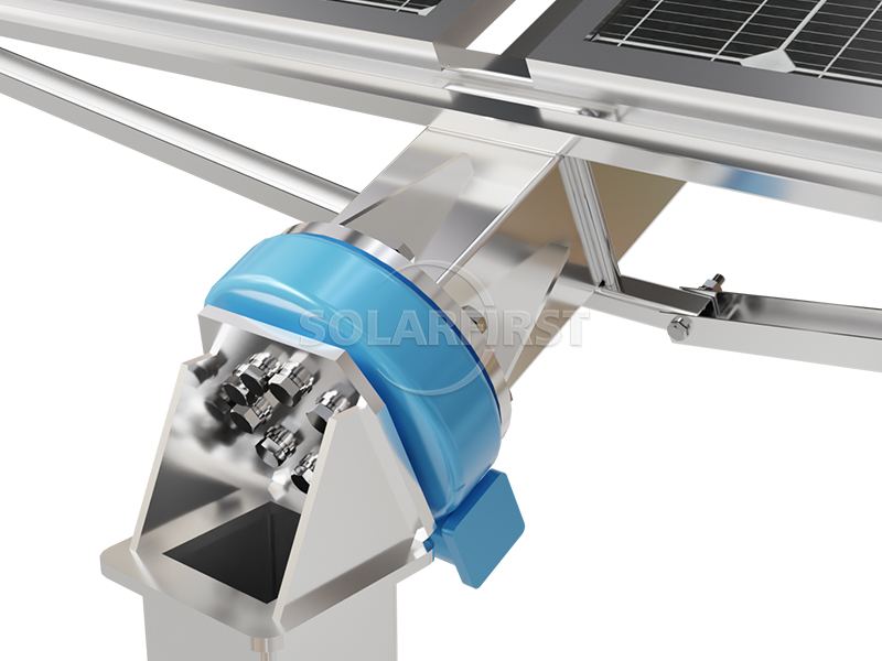 Le tracker solaire incliné à axe unique de la série Tilt est conçu pour les centrales solaires de grande taille, notamment dans les régions à hautes latitudes, offrant un équilibre optimal entre rendement énergétique et robustesse structurelle. Ce système présente une conception inclinée à axe unique qui pivote entre les plans horizontal et vertical, optimisant ainsi l'exposition au soleil tout en maintenant un profil au vent bas et une garde au sol optimale pour une sécurité et un encombrement optimisés.