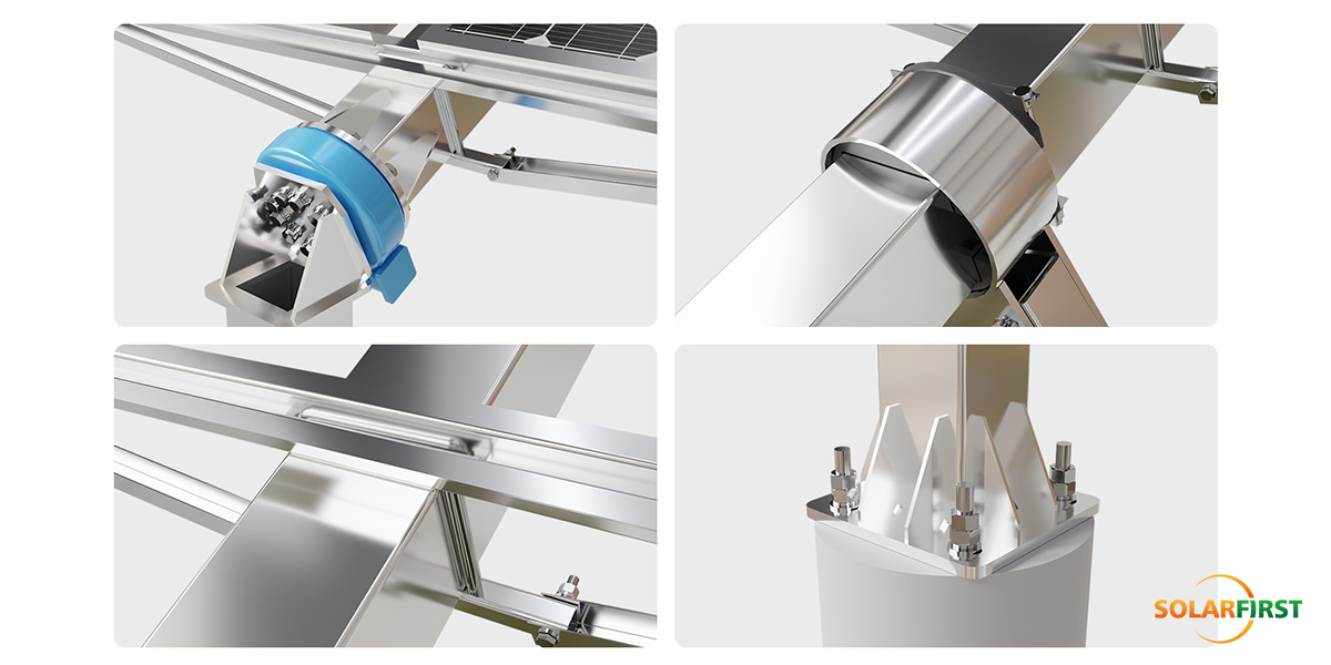 Fabriqué en acier galvanisé à chaud ou revêtu de Zn-Al-Mg avec une épaisseur moyenne de revêtement ≥ 80 μm, ce système offre une résistance exceptionnelle à la corrosion et une durabilité à long terme. Il s'adapte à différents types de fondations (sur pieux en acier, coulés en place ou en acier), permettant un déploiement flexible sur divers sites. Grâce à sa conception personnalisable et à sa résistance au vent jusqu'à 40 m/s, ce tracker allie fonctionnalités intelligentes et fiabilité à toute épreuve pour les projets solaires publics et commerciaux.