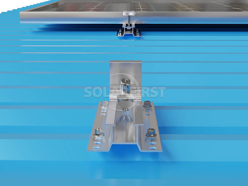 Système de montage pour toiture métallique solaire sans rail, le rail Mini U se fixe directement sur les tôles. Les panneaux solaires sont fixés à l'aide de pinces intermédiaires et terminales, ce qui réduit le nombre de composants et permet de réduire les coûts de matériaux et le temps d'installation. Le système de rail en U pour toiture métallique solaire peut être monté en orientation paysage ou portrait et est compatible avec différents types de modules photovoltaïques.